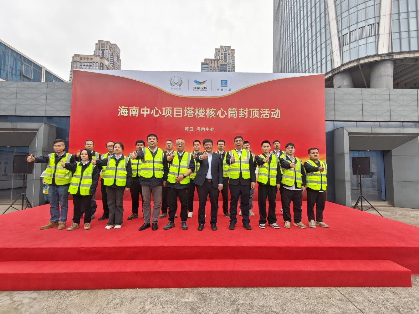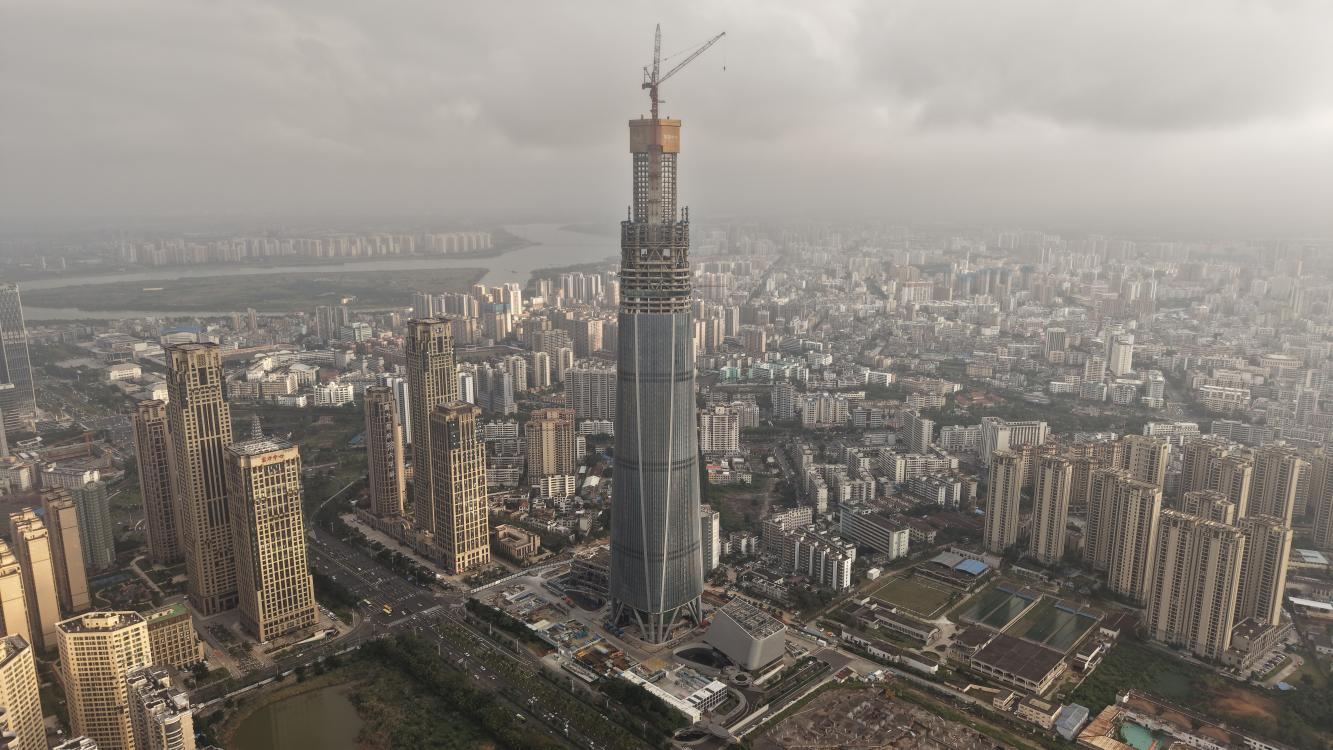 2025年12月16日,隨著最后一方混凝土澆筑完畢,海南中心項目核心筒結構成功封頂,項目當前建設高度已達402米,標志著項目建設取得了里程碑式的重大進展。